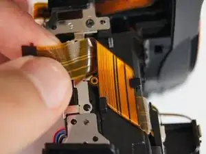 Это руководство покажет, как заменить конденсатор вспышки в камере Sony SLT Alpha -G5V. При снятии оранжевой ленты с контактами удобнее начать с вынимания небольшого отверстия в ленте из его крепления. Сам конденсатор припаян к камере, и необходимо заменить весь узел целиком.
