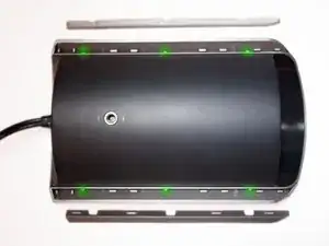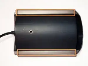 При помощи небольшого плоского инструмента снимите пластиковые заглушки с обеих сторон корпуса (обведены оранжевым).