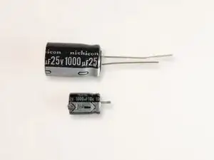 Приобретите четыре конденсатора ёмкостью 1000 мкФ, рассчитанные на 25 вольт. Конденсаторы, использованные в этом руководстве, были куплены в Digi-key. Артикул Digi-key: UHE1E102MHD6. http://search.digikey.com/scripts/DkSear...
