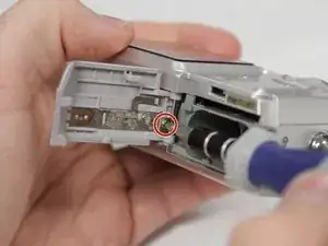 На нижней стороне крышки для батареи найдите единственный винт размера 3.0 мм, который соединяет контакт батареи с крышкой. Удалите его с помощью крестовой отвертки с битой #0.