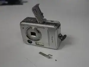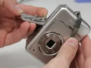 Найдите отсек для батареи на нижней стороне камеры, напротив стороны с кнопкой питания.
