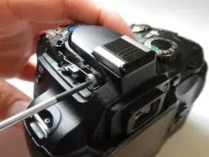 Удалите два винта Phillips #0 размером 3.0 мм с передней части отсека вспышки с помощью малого отвертки с крестообразным наконечником.