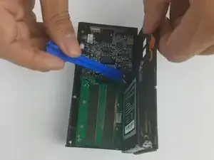 Подденьте заднюю панель, как показано, с помощью пластикового инструмента для вскрытия.