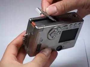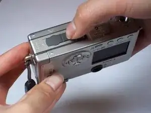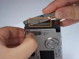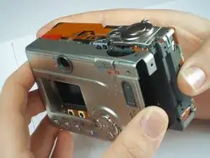 Осторожно оттяните заднюю панель корпуса от фотоаппарата.