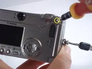 Удалите два винта с крестообразной шлицем, 2,4 мм, с правой стороны фотоаппарата.