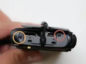 На нижней правой стороне корпуса камеры удалите один винт с помощью отвертки Phillips #00.