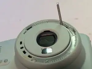 Крышка слота выброса плёнки скрывает один из винтов, который необходимо выкрутить для снятия корпуса камеры.