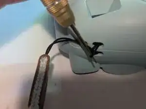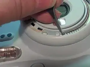 Крышка диска регулировки яркости закреплена двусторонним скотчем и тремя защёлками. Вставьте тонкий лезвийный инструмент под наружный край крышки.