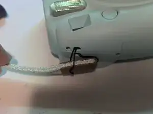 Протяните основную часть ремешка через петлю, чтобы снять ремешок с камеры.