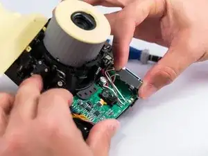 Осторожно, используя маленькую отвертку Philips #00, удалите пружину из внутреннего компонента камеры.