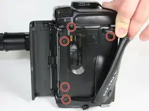 Снимите три винта 4.5 мм с правой стороны видеокамеры.