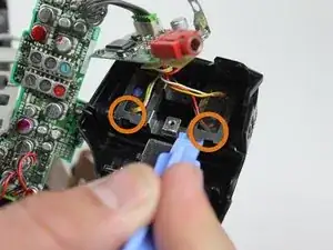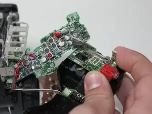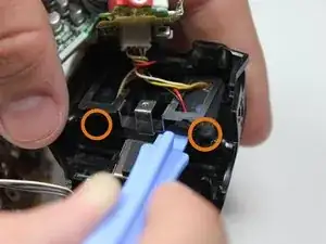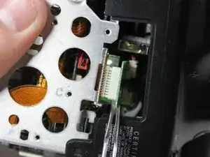 Повторно используйте металлические пинцеты, чтобы вытащить соединительный корпус на дне камеры. Правую сторону корпуса теперь можно снять, потянув её вправо.
