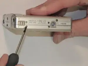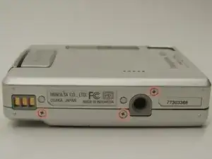 Найдите и снимите серебристые винты с каждой стороны камеры.