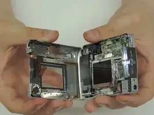 Затем аккуратно отожмите переднюю и заднюю части корпуса от внутренних компонентов.