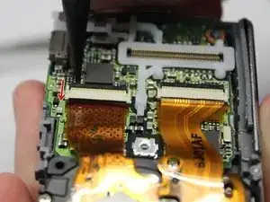 Верхняя панель управления соединена с остальной частью камеры хрупким многоконтактным разъёмом. Будьте осторожны, чтобы не согнуть контакты!