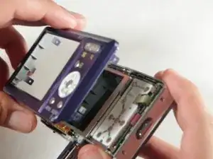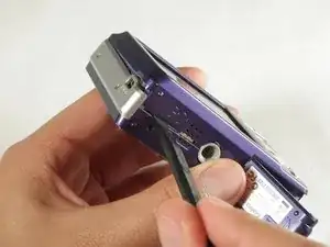 С помощью отвертки Phillips #00 выверните одиночный винт, крепящийся к передней панели в верхнем левом углу. Передняя панель должна легко отделиться.