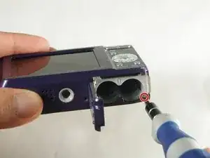 С помощью отвертки Phillips #00 выверните винт внутри крышки отсека батареи.