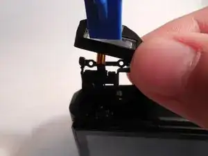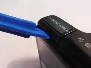 Поместите ноготь или пластиковый инструмент для вскрытия в зазор между корпусом камеры и корпусом вспышки.