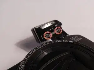 Снимите два винта J000 длиной 4 мм, расположенных внизу корпуса вспышки.