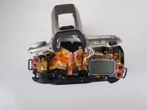 Выкрутите два серебристых винта Phillips #00 длиной 5,0 мм с каждой стороны видоискателя.