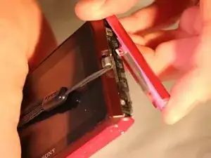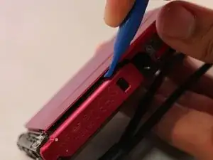 Пластиковым инструментом для вскрытия отделите кромку корпуса от остальной части камеры.