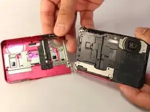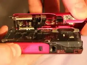 Отверткой Phillips #00 выкрутите один серебристый винт 5 2/5 мм, расположенный на передней стороне камеры.
