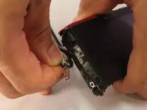 Отверткой Phillips #00 выкрутите два чёрных винта 2 2/5 мм со стороны камеры, противоположной ремешку для запястья.