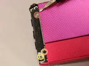 Отверткой Phillips #00 выкрутите один серебристый винт 3 мм, расположенный на передней стороне камеры.