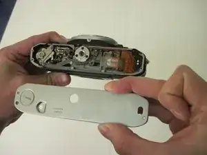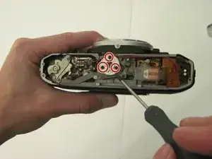Снимите два винта с крестообразной головкой на нижней крышке с помощью отвертки Phillips #00.
