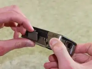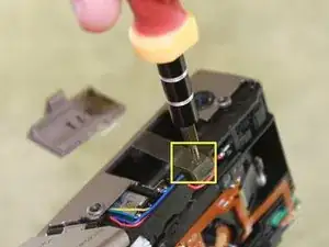 Найдите и удалите винт 3.80мм, который крепит пластиковую полоску к корпусу камеры с помощью отвертки Philips #00.
