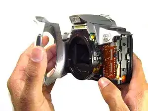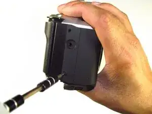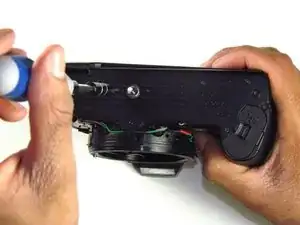Выкрутите два чёрных винта Phillips #1 длиной 4,8 мм на передней части камеры.
