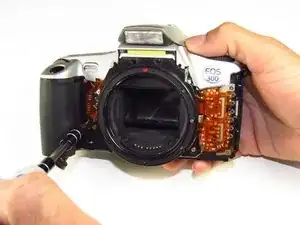 Выкрутите три чёрных винта Phillips #1 длиной 7,3 мм, расположенные по углам камеры.