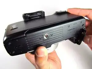 Извлеките батарейки из камеры, выдвинув их на ладонь.