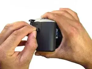Аккуратно отогните боковую панель сверху камеры с помощью пальца.