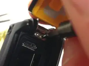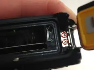Откройте крышку батарейного отсека. Убедитесь, что пара винтов теперь открыта в районе петли.