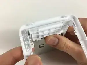 Сдвиньте заднюю панель с короткой стороны ближе к винтам, которые вы только что удалили, в сторону другой короткой стороны камеры. Она должна выдвинуться вперед и освободить защелки, удерживающие её на месте.