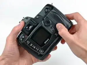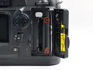Удалите два винта Phillips диаметром 2,8 мм, крепящие крышку для карты памяти к заднему корпусу.