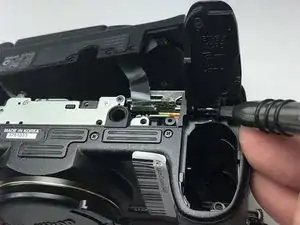Удалите один винт Phillips №0 длиной 3 мм с верхней части задней крышки камеры.