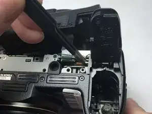 Используйте пластиковый инструмент для вскрытия, чтобы аккуратно отщелкнуть заднюю панель корпуса от корпуса камеры.