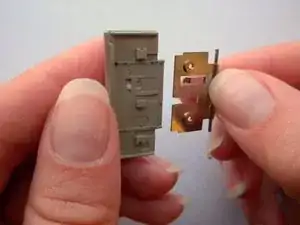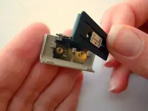 Сдвиньте металлическую деталь с крышки отсека батареи.