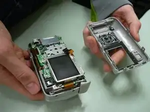 Полностью отделите заднюю крышку от остальных частей камеры. Уберите заднюю крышку в сторону.