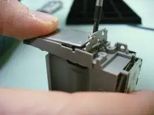 После удаления обоих винтов задняя петля крышки отсека для батареи поднимется.