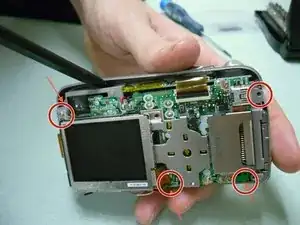 Удалите все пять винтов, расположенных на внешней оболочке камеры.