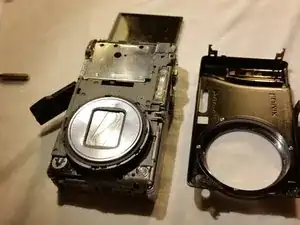После удаления винтов аккуратно и медленно снимите верхнюю половину корпуса с камеры.