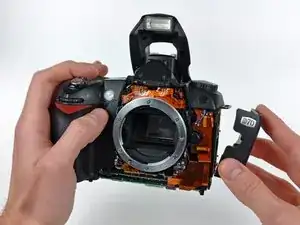 Осторожно оттяните боковые части задней крышки от корпуса D70.
