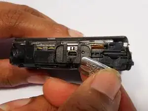 Как только вы удалите винты длиной 2 мм и 3 мм, осторожно потяните боковые стороны вверх с помощью самого маленького пластикового инструмента для открытия. Это откроет внутреннее пространство камеры.