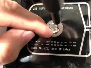 Используя отвертку Phillips #000, удалите один из винтов из вращающихся крючков в центре отсека для пленки.