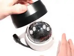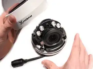 Вы успешно заменили прозрачный купол AvertX HD810, когда снова закрепили окрашиваемую накладку. Вы можете собрать устройство в любом порядке, следуя шагам в обратном порядке.