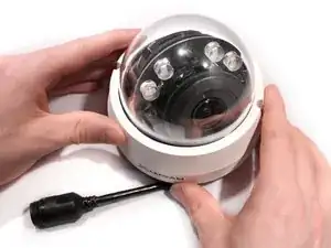 В данном руководстве рассматривается снятие прозрачного купола камеры видеонаблюдения AvertX HD810. Вам понадобятся отвертка безопасности Torx T10 и заменяющий купол для камеры. Рекомендуется выключить камеру перед проведением этой процедуры.