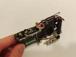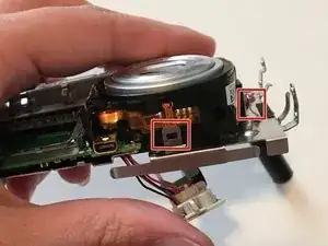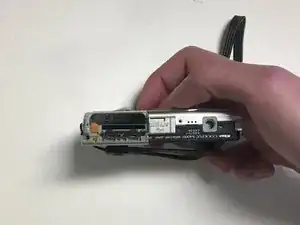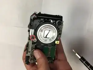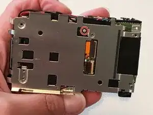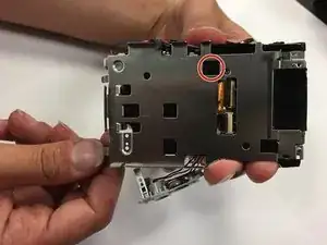 Снимите один винт Phillips #000 длиной 3 мм с задней стороны камеры.